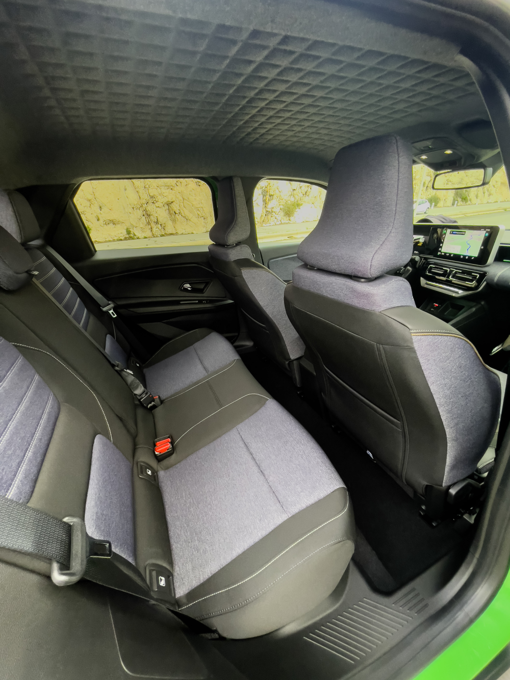 Benpladsen på bagsædet er også stærkt begrænset. Undertegnede er 179 cm høj og kan skrive under på, at for de fleste voksne er bagsædet ikke et behageligt sted at opholde sig i længere tid.