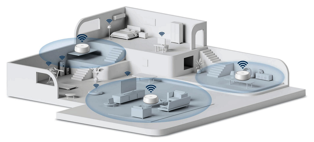 Mesh-løsningen gør det muligt at wi-fi-dække udfordrende miljøer som for eksempel en lille virksomhed med flere rum og solide vægge eller et hjem med to eller flere etager.