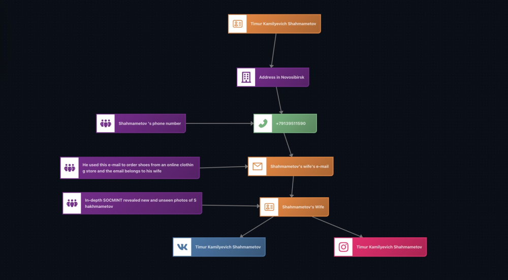 Telefonnummeret viser sig at være tilknyttet et online-køb af et par sko, men hvor det er Timur Kamilevich Shakhmametovs kones mail, som er brugt.