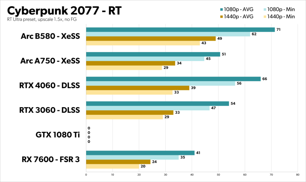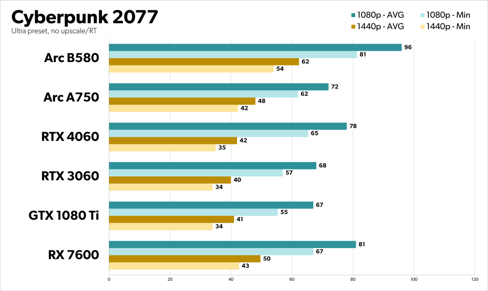 I krævende spil som Cyberpunk 2077 og Returnal leveres der ydelser i en liga over både Intels Arc A750, AMD’s RX 7600 og Nvidias GeForce RTX 4060.