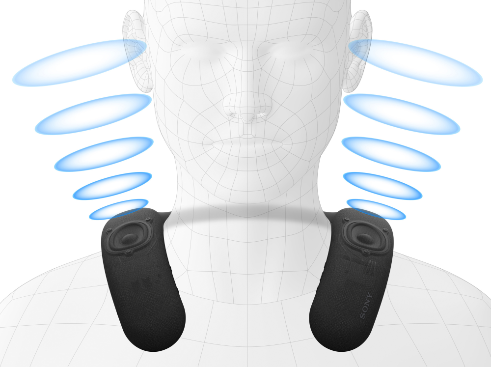 Begge dele har Sony indfriet, så de to skulderhøjttalere (i mangel af bedre ord) indeholder to højttalere, der som sagt kan spille frit.