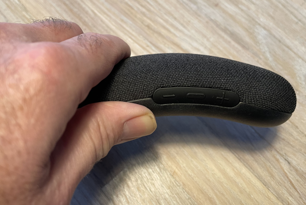 Der er også knapper på siden, som du kan benytte, men de er ærligt talt vanskelige at anvende , når du først har smidt dig i sofaen, da de sidder på indersiden af den ene skulderpude.