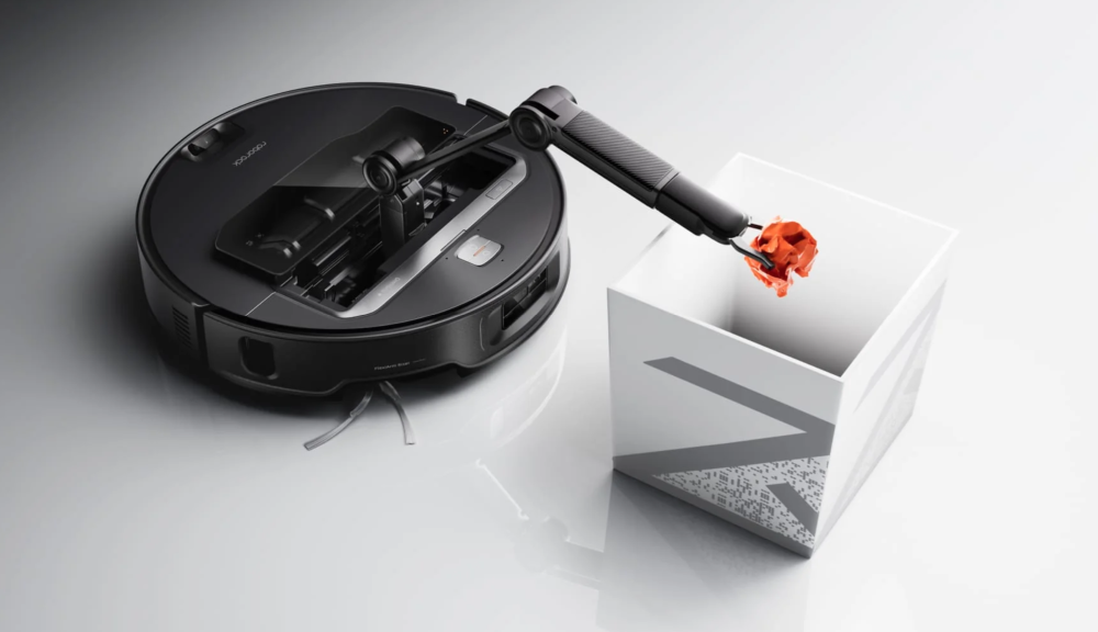 Roborock Saros Z70 markerer sig som tæppefræser ved at have fastmonteret en ’Omnigrip’ robotarm, som den kan samle rod op med og putte af vejen.