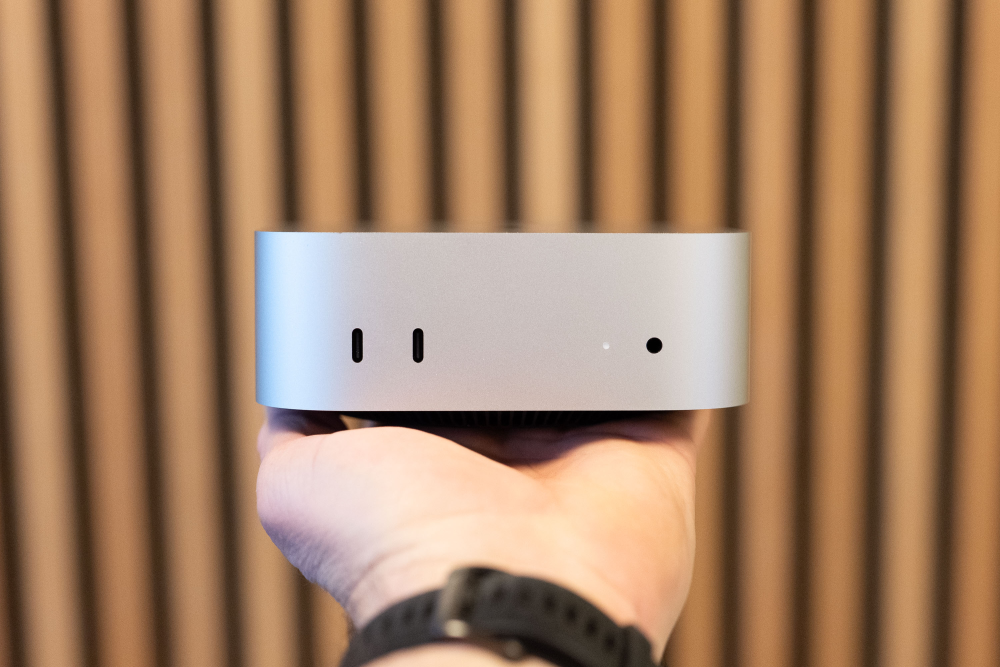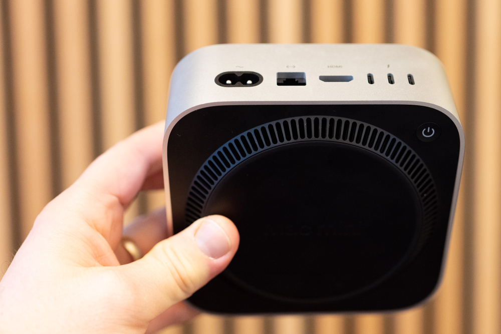 Ellers er her fem USB-C porte, hvoraf de tre giver Thunderbolt 4 eller 5-hastigheder, alt efter hvorvidt man har tilkøbt den dyrere ’M4 Pro’-processor.
