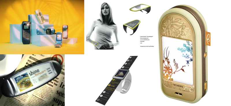 Her er alt fra vildt futuristiske kurvede smartphones – der givetvis havde været umulige at bygge med datidens teknologi – til smartwatches og meget andet.