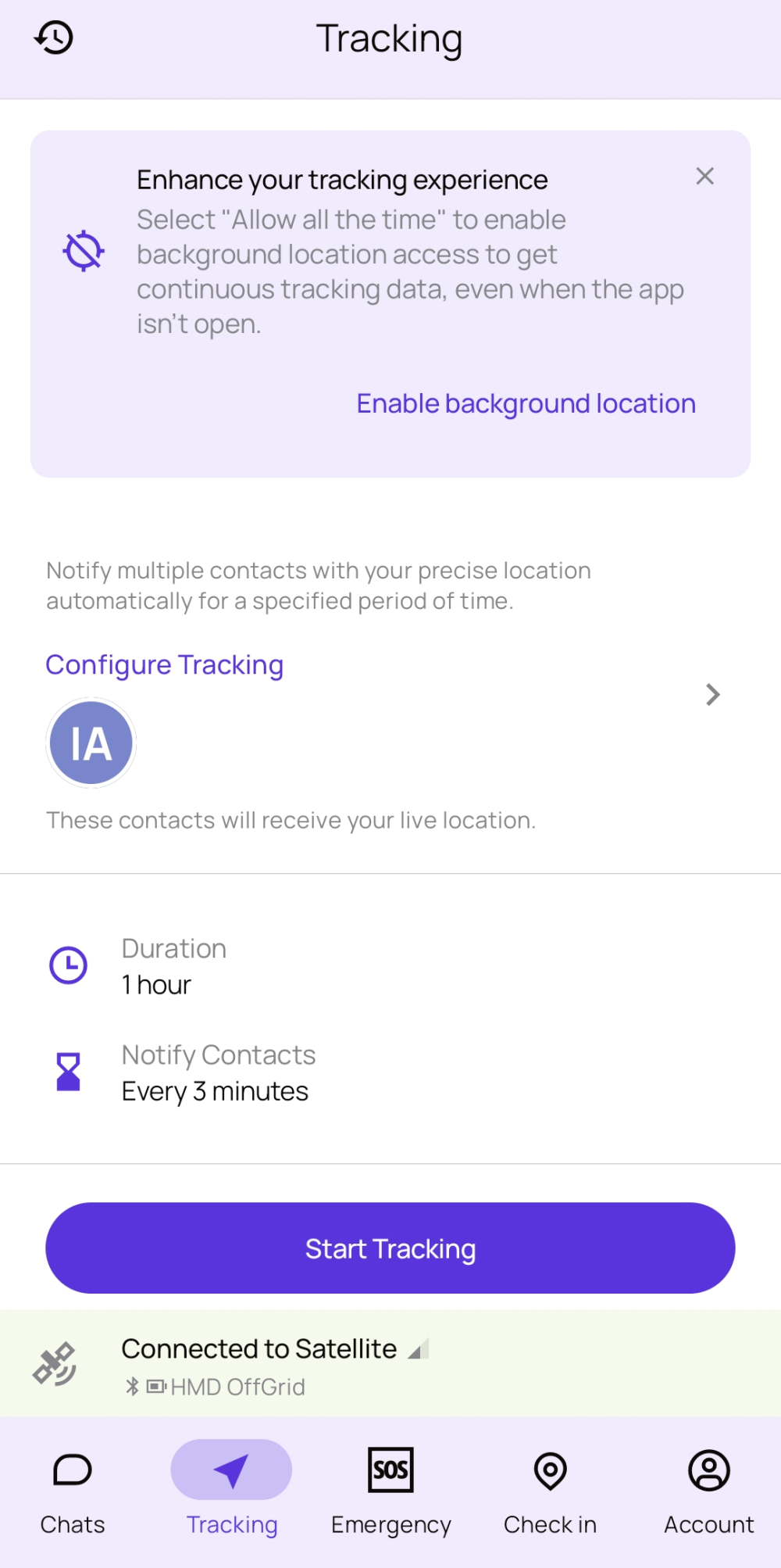 Jeg valgte selvfølgelig min hustru, og nu får hun en SMS, når jeg aktiverer enhedens tracking-funktion, samt når jeg afslutter en tur.