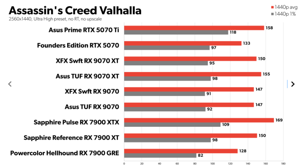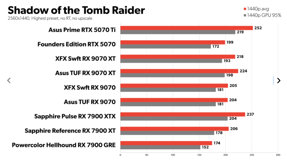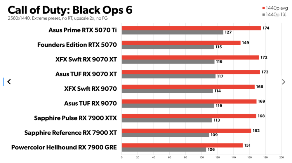 I Assassins Creed Valhalla, Call of Duty: Black Ops 6 og Shadow of the Tomb Raider placerer RX 9070 og RX 9070 XT sig mellem RTX 5070 og 5070 Ti kortene