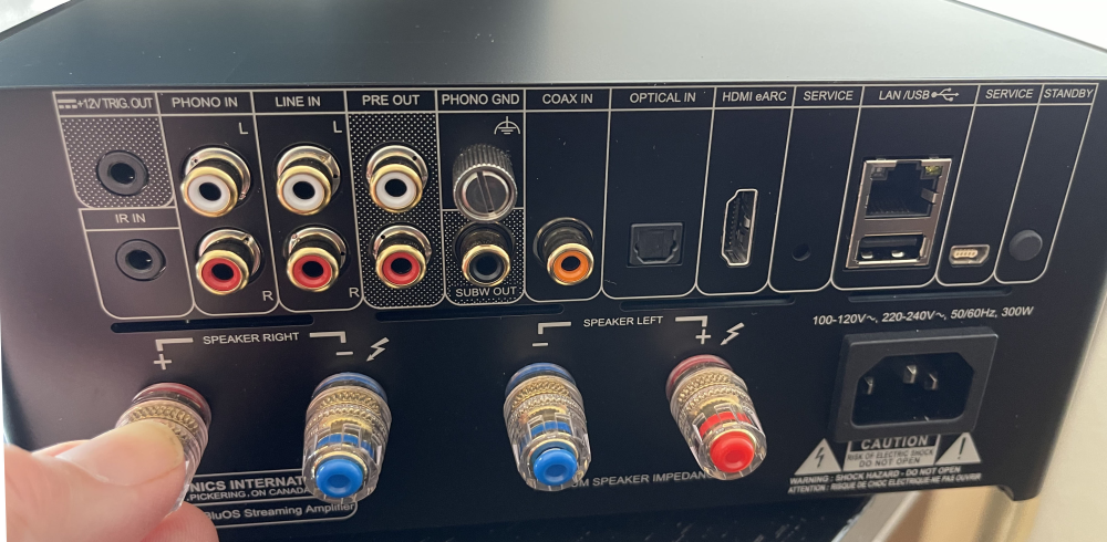 Bagpå finder du alle tilslutninger – herunder også til pladespiller. Jeg noterer også kraftige skrueterminaler til højttalere, hvilket efterhånden er en sjældenhed.