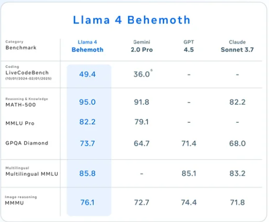 Her er Behemoth modellen bedst i test, hvor den placerer sig foran øvrige konkurrenter såsom Googles Gemini 2.0 Pro, OpenAI’s GPT 4.5 og Antropics Claude 3.7 Sonnet.