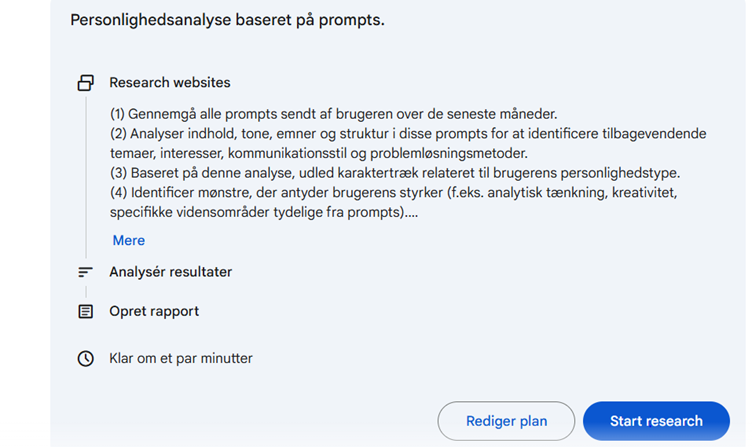 En ven havde bokset lidt med at lave en Android app. Det var ikke gået helt optimalt hele tiden. Så han mødte op en morgen med en lang, god prompt og den brugte vi så som “fodder” til Google Gemini og ChatGPT ☺️ og et par andre småting og fik nogle monster-super-duper-prompts ud af det, som så røg videre til Deep Research i ChatGPT og Google Gemini.