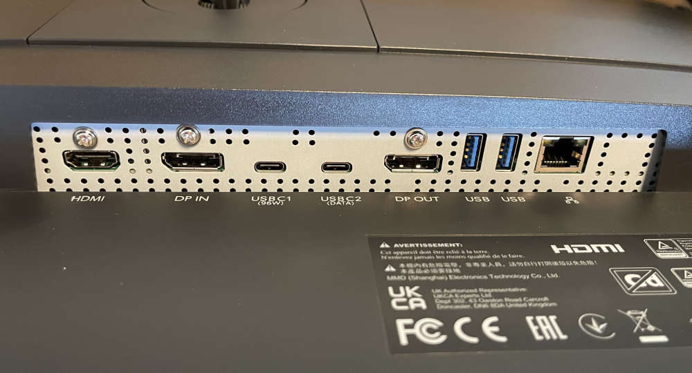 Tager vi det fra en ende af, har du USB-hub i siden (med ”knage” til headset), fire USB type A-porte og to USB-C. Du kan naturligvis tilslutte billede via USB-C, men HDMI 2.0 og DisplayPort 1.4 er også til rådighed.