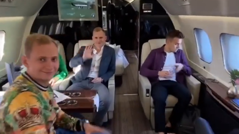 Screenshot fra en video delt på sociale medier, der viser flere af Contis ledende medlemmer ombord på privatfly, der fejrer en af kollegaernes fødselsdag. (Foto: X / screenshot)