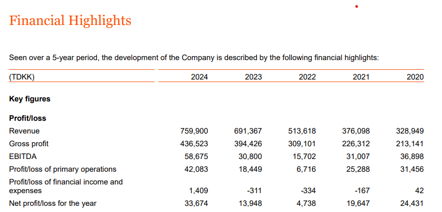 Selskabet lander en omsætning på 759,9 millioner kroner for regnskabsåret mod 691,3 millioner kroner i 2023.
