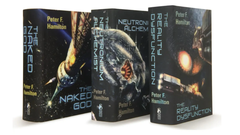 Over tre bind – The Reality Dysfunction, The Neutronium Alchemist og The Naked God – maler Peter F. Hamilton et storslået og ekstremt detaljeret billede af menneskehedens fremtid blandt stjernerne.