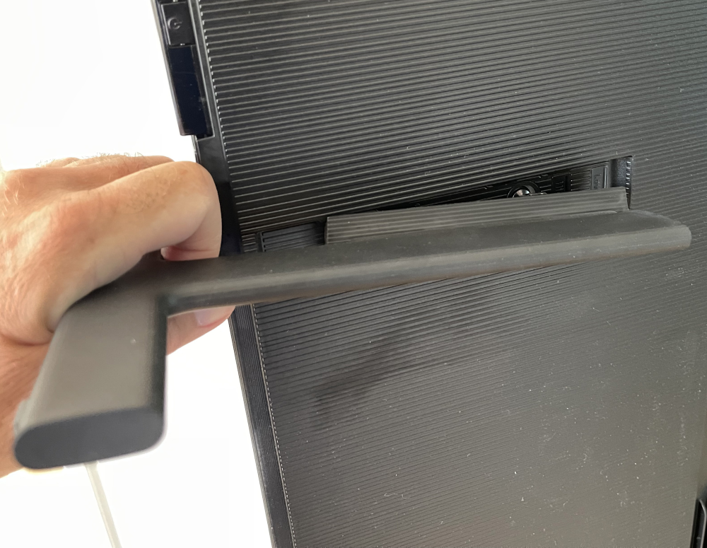 Det betyder, at The Frame kan hænges meget tæt op ad en væg med det gode vægbeslag, der følger med. Ønsker du at stille det på en reol, bruger du bare de medfølgende fødder, der er lige til at klikke på uden skruer eller brug af værktøj.