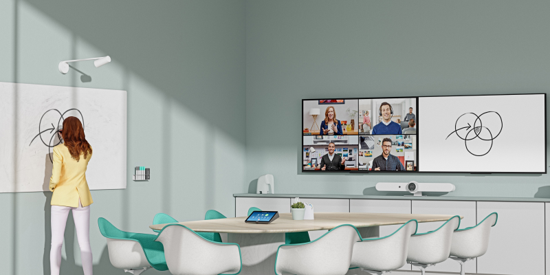 Logitechs Scribe-løsning er ret smart i mange sammenhænge – især til det mindre mødelokale, hvor der anvendes simple videokonferenceløsninger. Her er det, som sagt, let at dele indholdet.