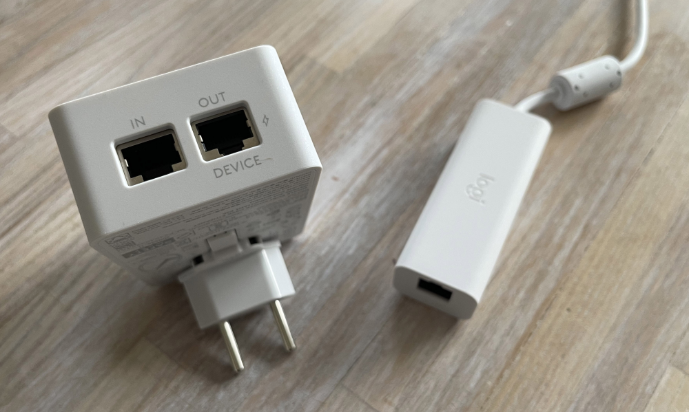 I samme strømforsyning finder du endnu en RJ45-tilslutning, hvor du kan koble til netværket – eller via den medfølgende adapter til USB-forbindelse med din laptop.