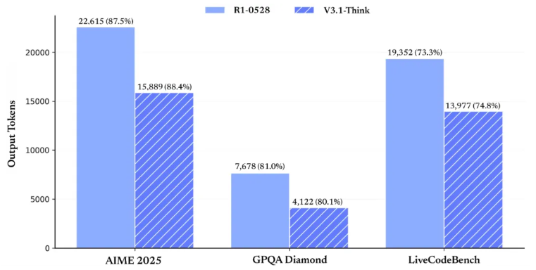 I forhold til R1-modellen udmærker V3.1-modellen sig ved at være betragteligt mere kortfattet i sine svar, mens den altså scorer lige så godt eller en anelse bedre end sin forgænger ifølge Deepseeks egne benchmark-tal.