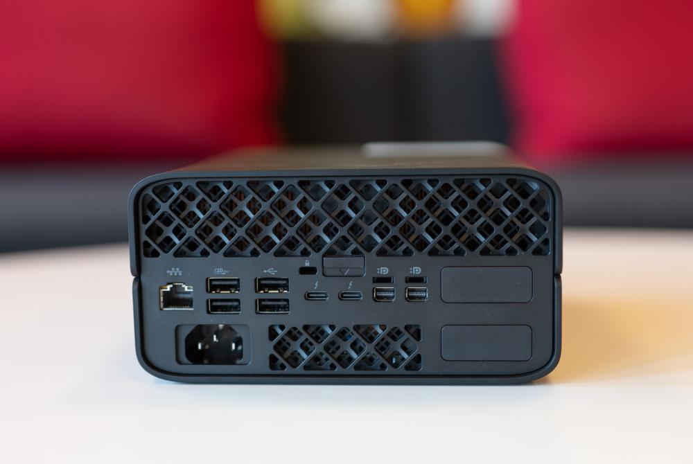 Z2 mini er en maskine, som der skal bestilles noget på, hvilket afspejler sig i udvalget af porte, hvor der er tre gange thunderbolt/USB-C og to gange displayport at slutte tilbehør til.