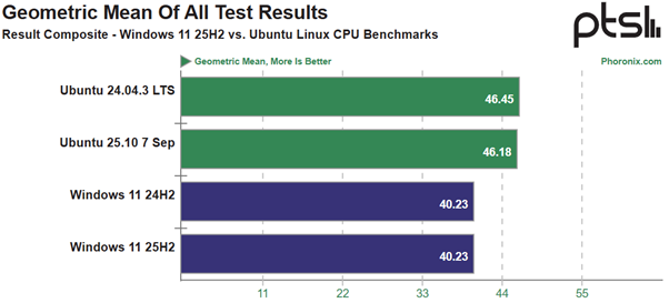 Det fremgår af netmediet Phoronix’ undersøgelse, hvor en samling benchmark-test afvikles på både den forrige og kommende version af Windows.