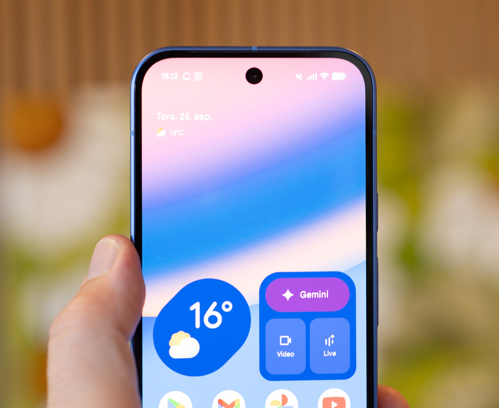 Det er samme maskineri som i de dyrere ’Pro’ modeller, dog alene akkompagneret af 12 i stedet for 16 gigabyte hukommelse. Det er i øvrigt det samme, som man finder i Apples nyeste iPhone 17 Pro modeller.