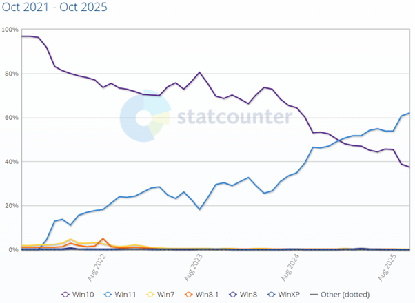 Windows 11’s markante fremgang sker blot få dage inden, at Microsoft planlagte pensionering af Windows 10 løber af stablen 15. oktober.