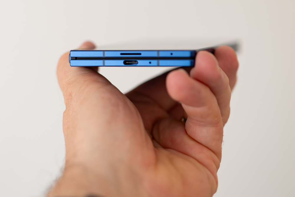 Fold7 er nemlig blevet rigtig, rigtig tynd. Den er nu så slank, at selv når mobilen er klappet sammen, er den ikke synderligt tykkere end en almindelig smartphone.