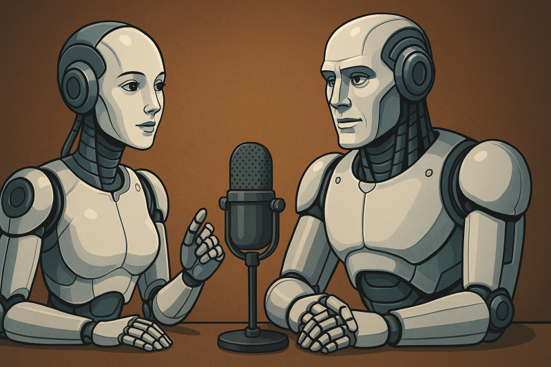 Det er en fin idé. Men formen vil nok skabe debat. Her er den computergenererede dialog mellem de to ”værter” nemlig skabt via AI-prompts.