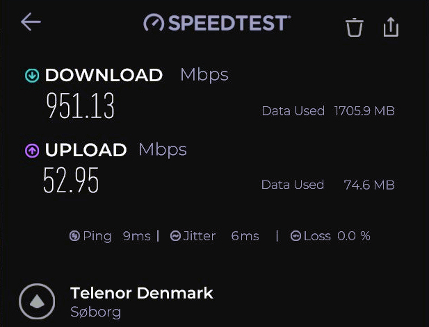 Fuldt udbytte af WiFi 7 får du selvfølgelig kun med kompatible smartphones og andre enheder, men selv min over fem år gamle Galaxy S20 Ultra, der i øvrigt er ude af support og snart bliver pensioneret, performer bedre end normalt sammen med Telenors nye router.