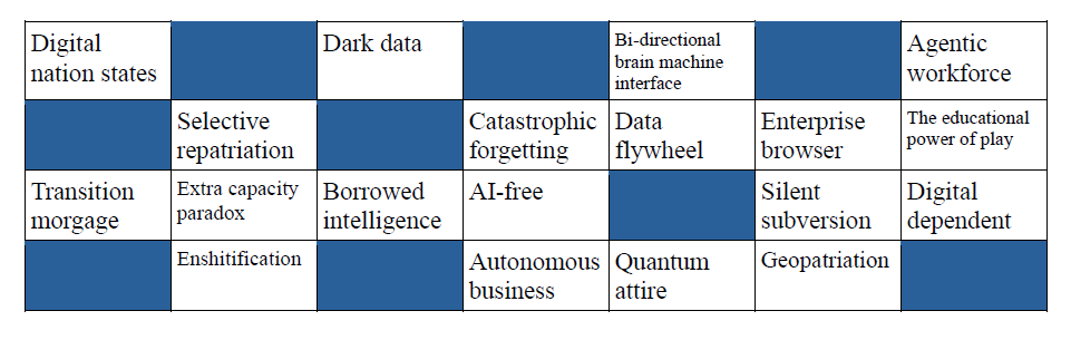 | Agentic workforce | Menneskelige opgaver varetages af softwarerobotter |
