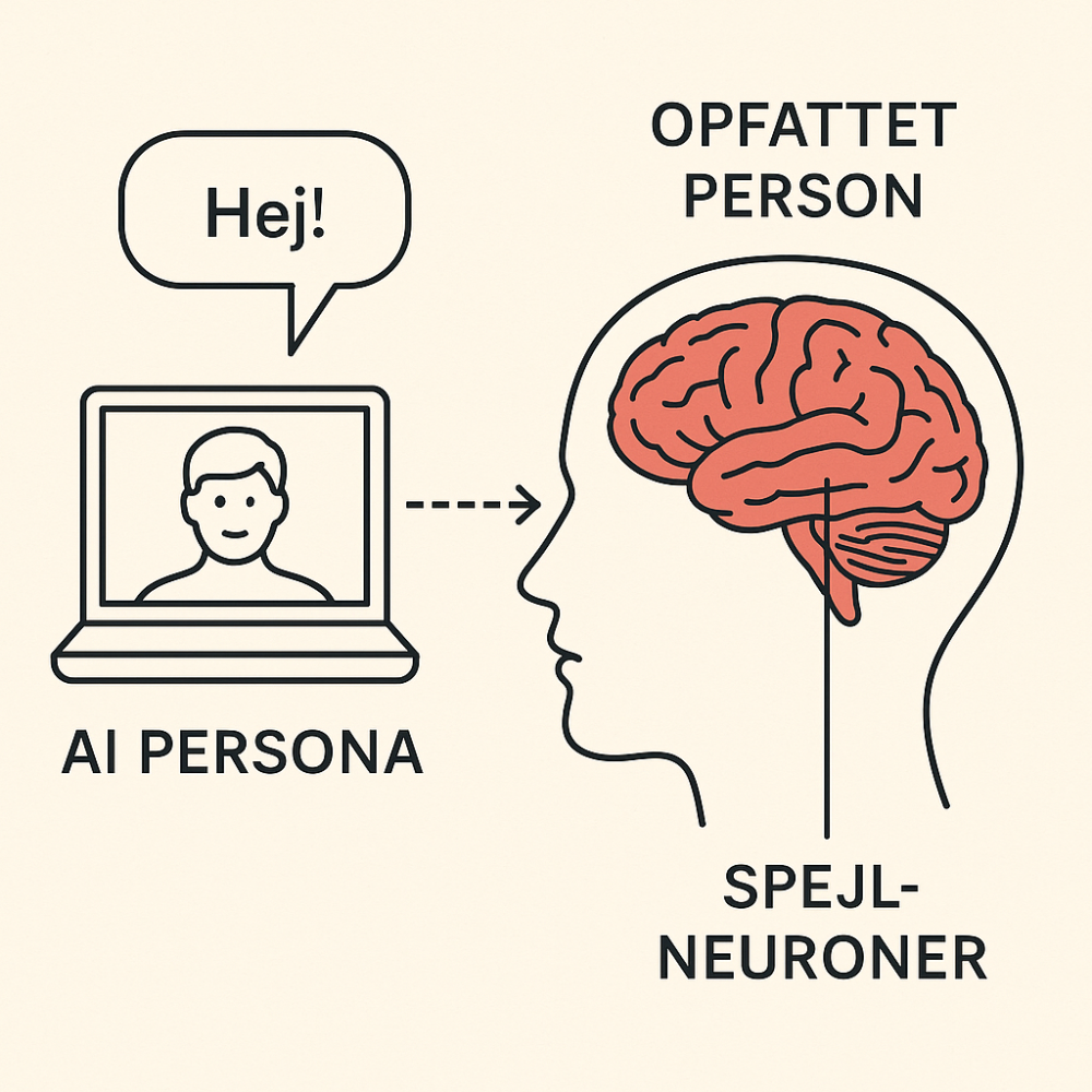 Det gør vi teknisk set ikke med en AI-persona i ren tekst, men fordi sprogmodeller besvarer os med en så menneskelig rytme, varme og overbevisning, vækkes de samme neurale mekanismer i os.