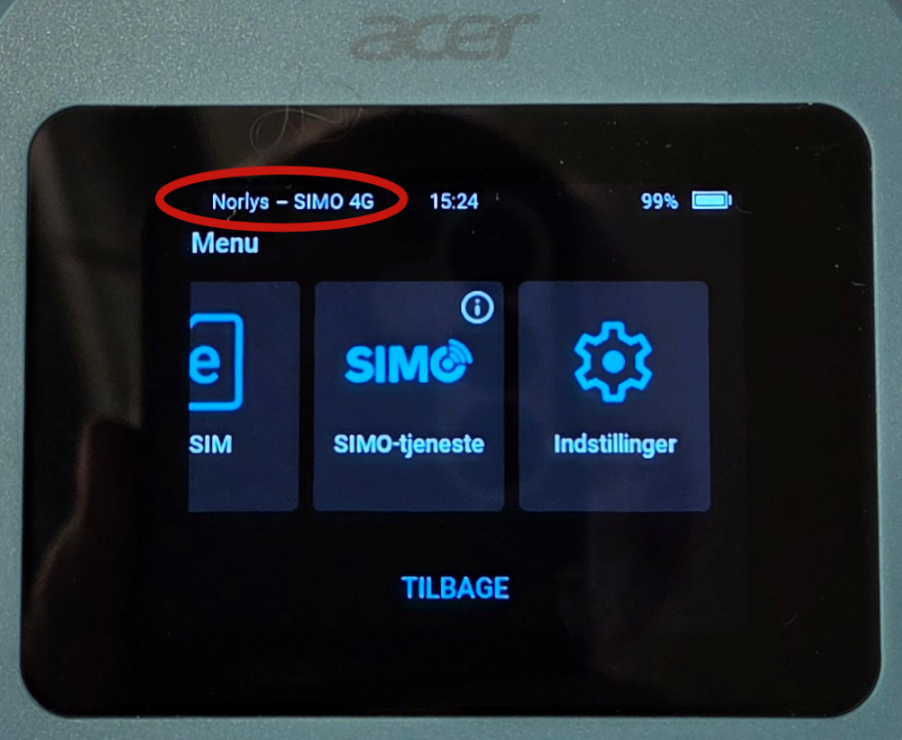 Hvem der er SIMOs samarbejdspartner i Danmark, har jeg gravet lidt i. Da jeg havde fået liv i SIMO-funktionaliteten, fik jeg én valgmulighed: Connect M4 viste ”Norlys – SIMO 4G” på skærmen.