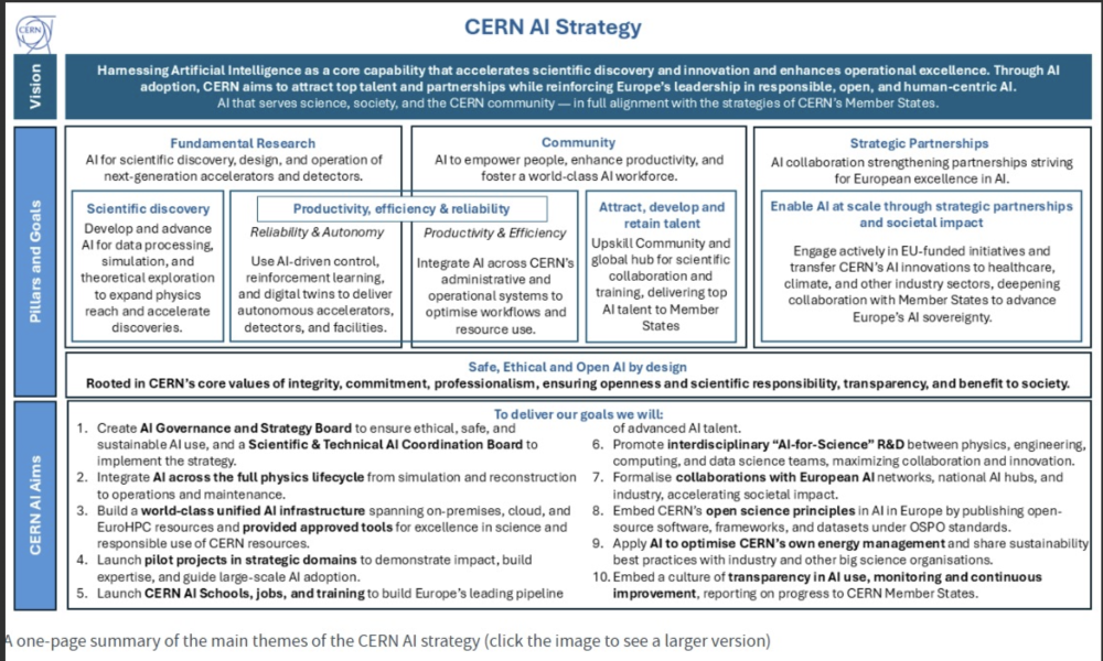 Min kloge ven Jim sendte mig dette link til CERN’s AI-strategi, og den er lige til at kopiere. De har tænkt på det hele. Prop den ind i ChatGPT og tilpas den mht. sprog og andet, og vupti! Her er tillige en fin illustration/one-pager fra dem: