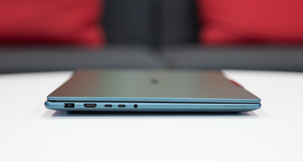 Test-udgaven her er født i den nydelige ’Tidal teal’ version, som med sit blålige skær giver en tiltrængt vekslen fra de sølv- og mørkegrå bærbare, man ellers kan få på markedet.