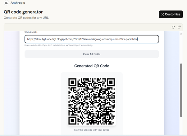 Jeg testede to andre ting i Claude: Powerpoint-slides og QR-koder.
