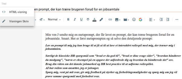 Metaprompt, der laver en prompt, der kan træne brugeren forud for en jobsamtale