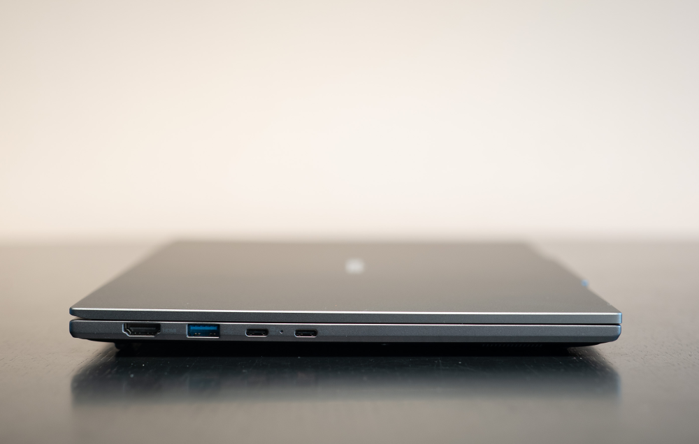 Til gengæld kan man glæde sig over, at der til trods for fluevægten ikke er sparet på antal af porte. Man får tre klassiske USB-A porte og to USB-C porte serveret samt en HDMI-udgang. Her tilbydes dog desværre ikke Thunderbolt 4.