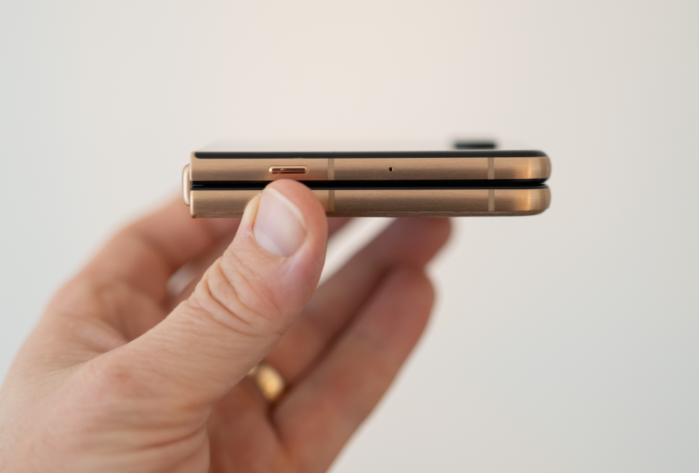 Modsat originalen fra 90'erne skal man dog ikke regne med at kunne klappe mobilen op med en hånd. Dels er skærmen nok for sårbar til det, men det lægger klapmekanismen altså heller ikke op til.