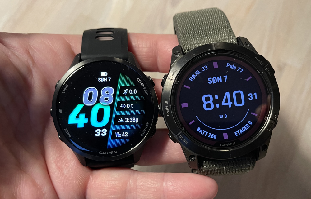 Fenix er dog tungere og større end Forerunner, der som sagt er lavet specifikt til løbere.