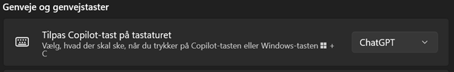 Den enkleste vej til at omprogrammere Copilot-knappen går igennem Windows Indstillingerne. Det er dog ikke alle Windows-versioner der understøtter denne mulighed.
