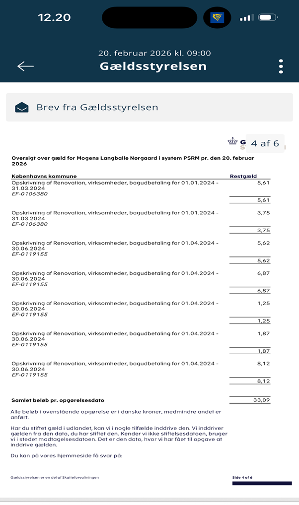 Det drejede sig om Københavns Kommune og den åndssvage affaldsafgift, som de IKKE havde sendt mig opkrævninger på.
