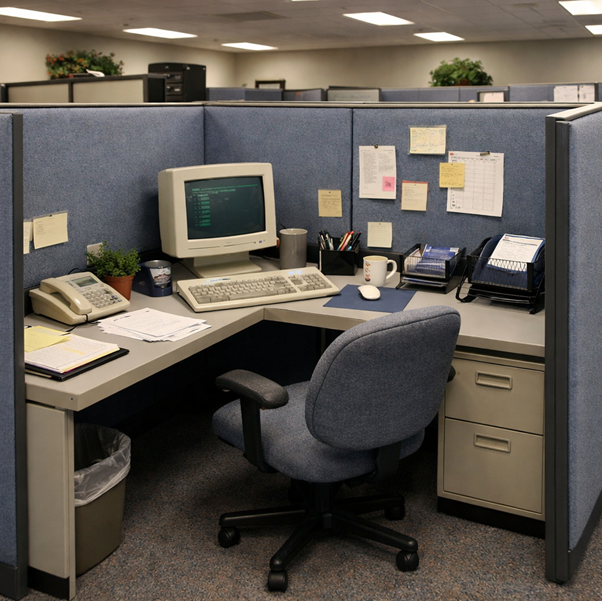 Jeg har i nogle omgange arbejdet i San Francisco-området, og dér havde jeg hver gang en “cubicle” til rådighed, og det var den samme hver dag.