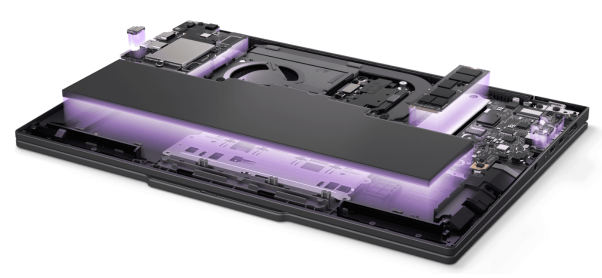 Ved at pakke chips og ram-komponenter tæt sammen og alene tillade korte veje mellem chips og processor, lykkedes det omsider at tilbyde LPDDR5X-hukommelse i et format, som brugeren selv kunne opgradere.