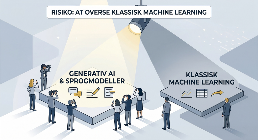 Hvis virksomheden derimod vil forudsige kundeafgang, optimere lagerbinding eller identificere risikomønstre, er det typisk klassisk machine learning, der er den relevante disciplin.