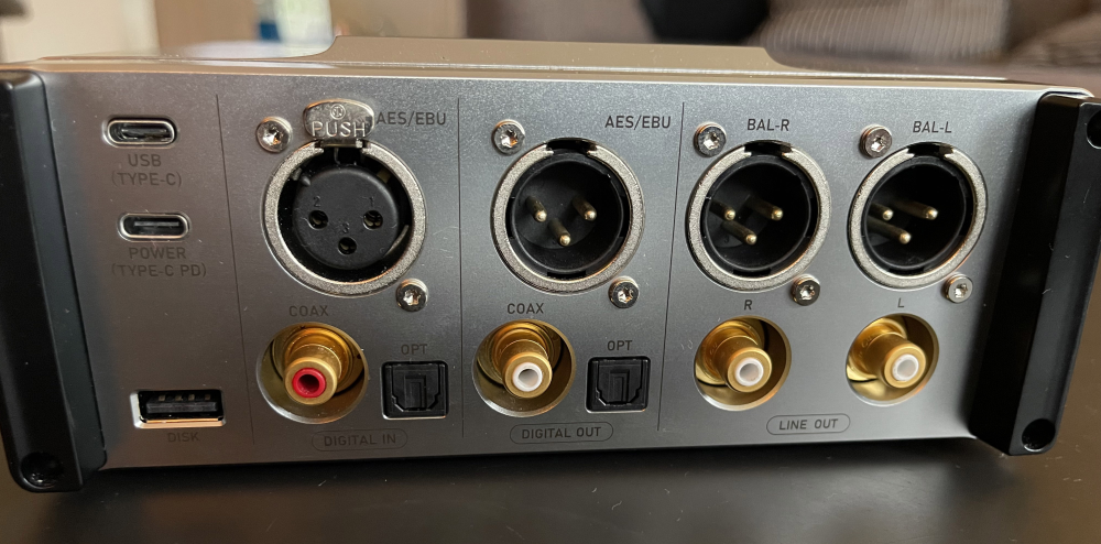 Der er også en 4-pin XLR-balanceret udgang. Bagpå finder du både normale og balancerede digitale og analoge ind- og udgange, så du kan bruge kredsløbene i andre sammenhænge med dit stereoanlæg.