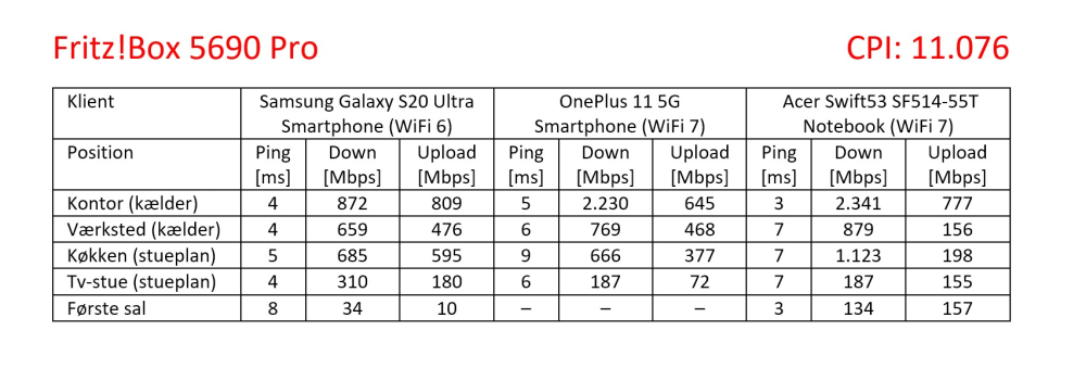 Jeg har naturligvis også foretaget mine sædvanlige målinger i mit testmiljø, hvor jeg registrerer hastigheder med tre klienter på fem forskellige positioner.