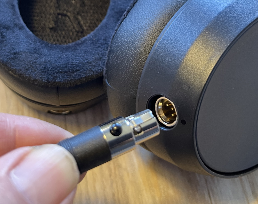Det tilsluttes via et specielt stik, som kan bruges i begge sider af hovedtelefonen, så du kan vælge det, der passer dig bedst. Det er smart, men udelukker muligheden for at bruge et andet – og måske bedre – kabel.
