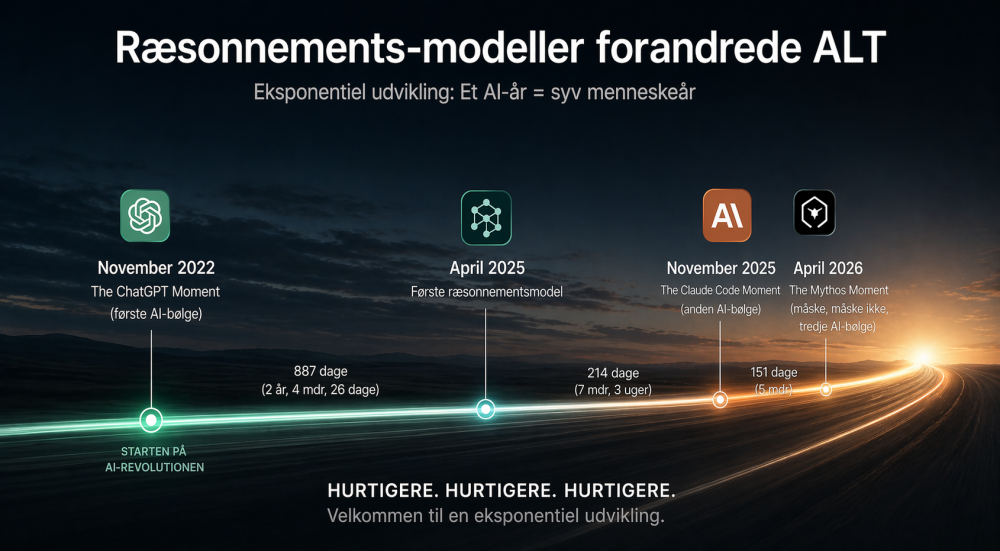 Jeg troede vitterligt, at det var to-tre år siden. Det understreger min tese om, at et AI-år er lig med syv menneskeår. Velkommen til en eksponentiel udvikling: