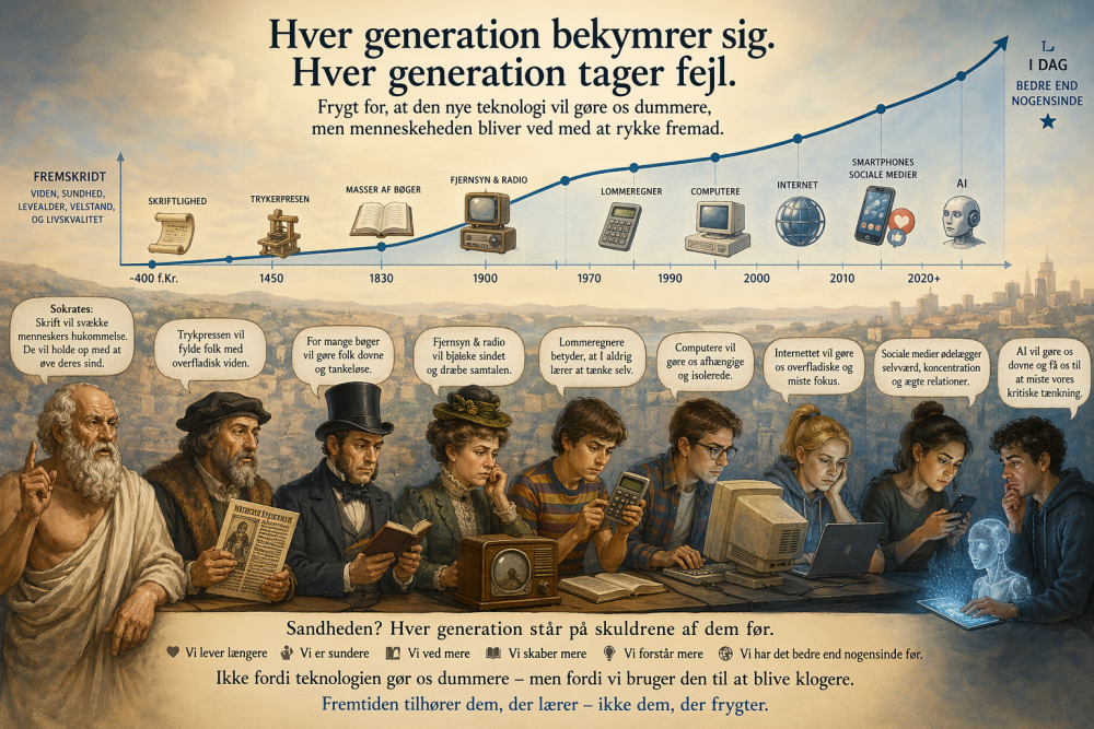 Jeg underviser tit i ChatGPT og andet AI-halløj. Jeg hører jævnligt den ældgamle traver (ja, den er i hvert fald et år gammel…) om, at AI gør os dummere.