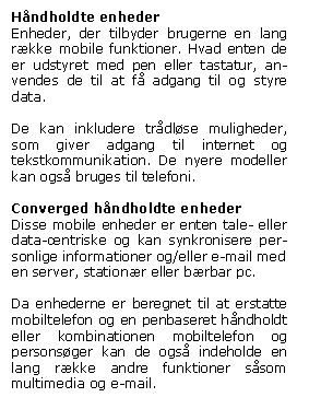 Markedet for håndholdte enheder er herhjemme fordelt på fem spillere: HP, Acer, Palm, Medion og Mio.